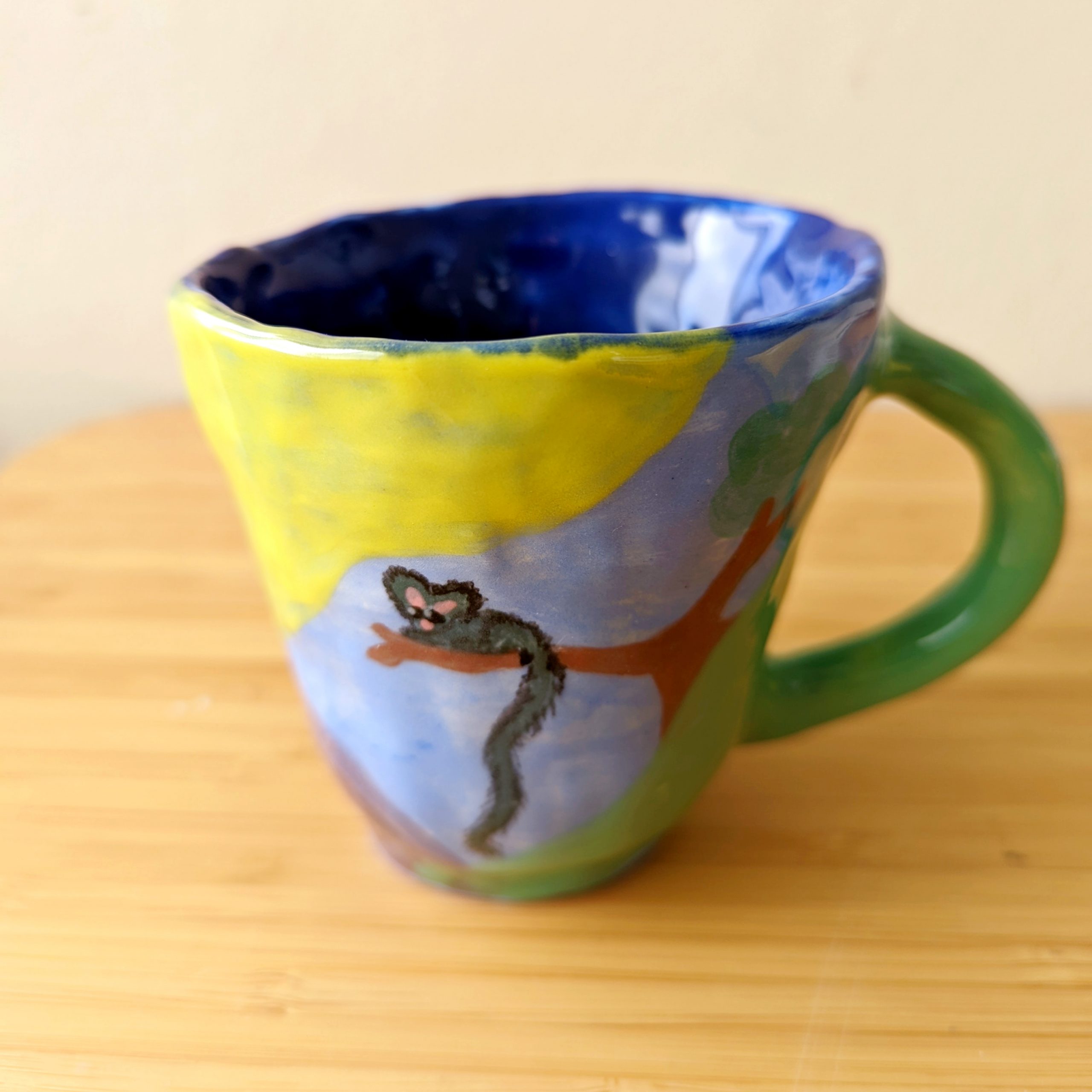 Hidden creatures series. This piece is ahand-built, sample-piece locally in Brisbane by Lilly. Medium mug with handle approx 9cm D, 8cm H.