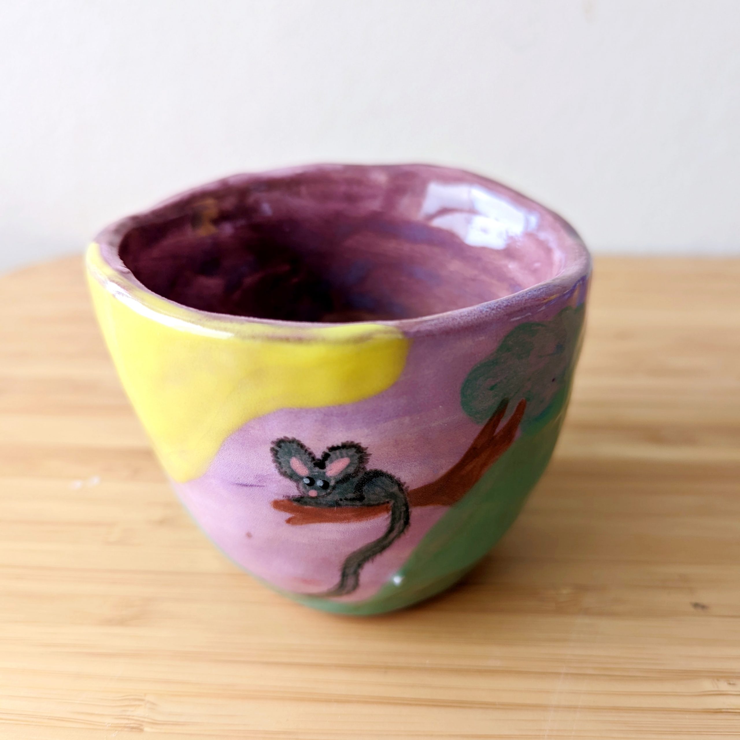 Hidden creatures series. This piece is a hand-built, sample piece locally in Brisbane by Lilly. Medium tumbler approx 8cm D, 7cm H.