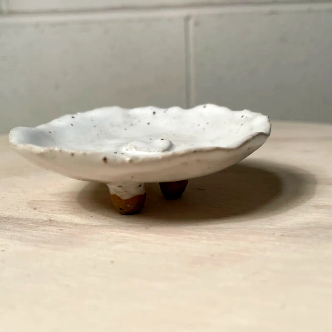 This piece is hand-built locally in Brisbane by Katie. Small white speckle dish with loveheart in the middle (10cm x 2cm). Available for pick-up by arrangement in Fairfield, Brisbane or via post for a flat fee. Please note: Colours may appear different on your screen. As these are hand-built, no two pieces are the same are may be slightly different from pictured.